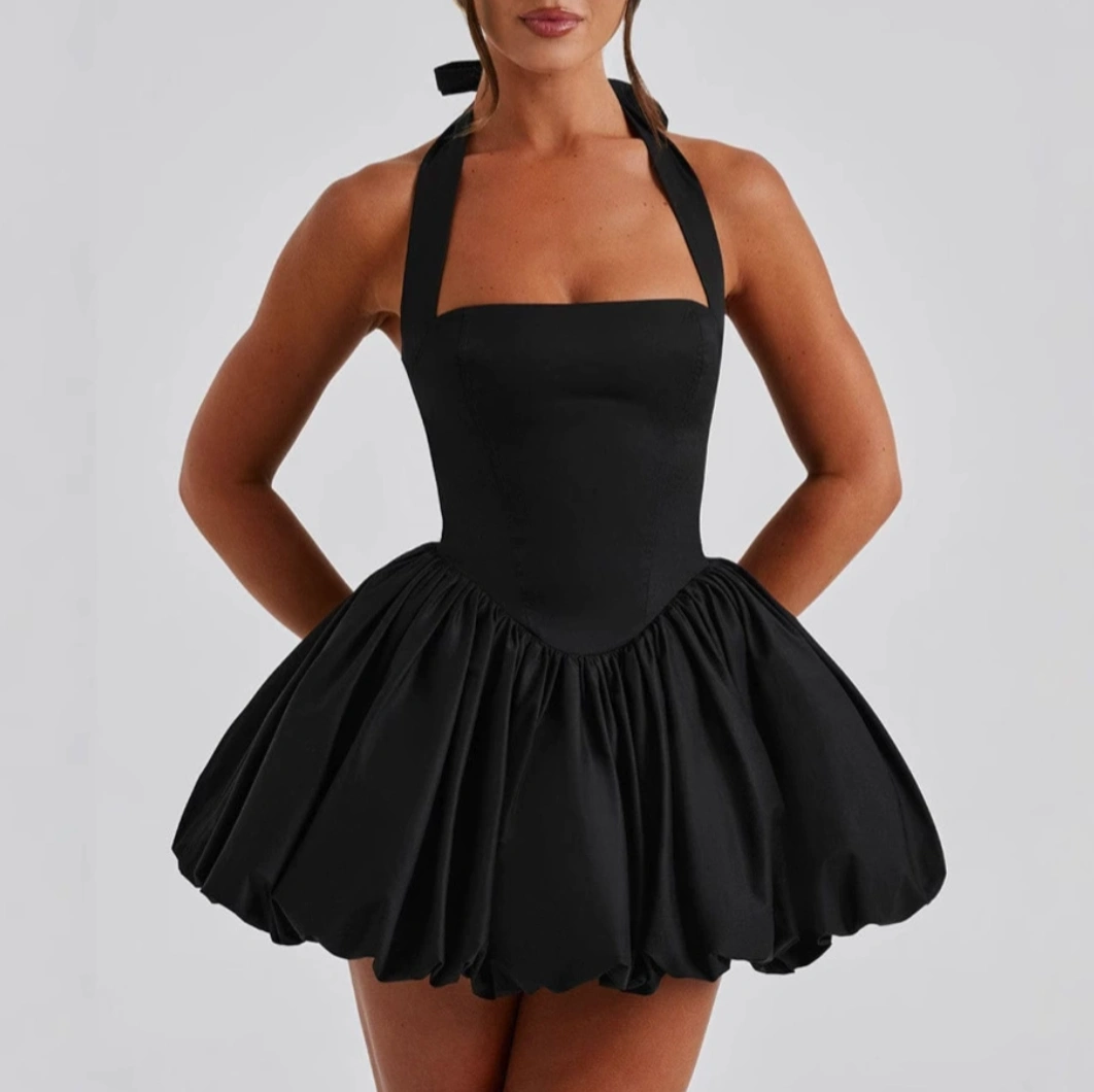 Bubble Skirt Dress - Mini Short Dress in Black