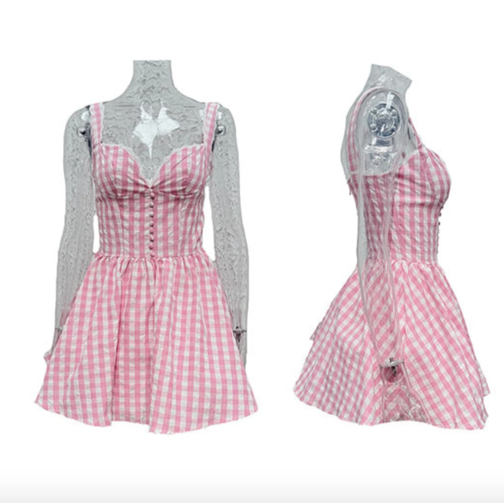 Cute Short Dress with Pink Checked Print