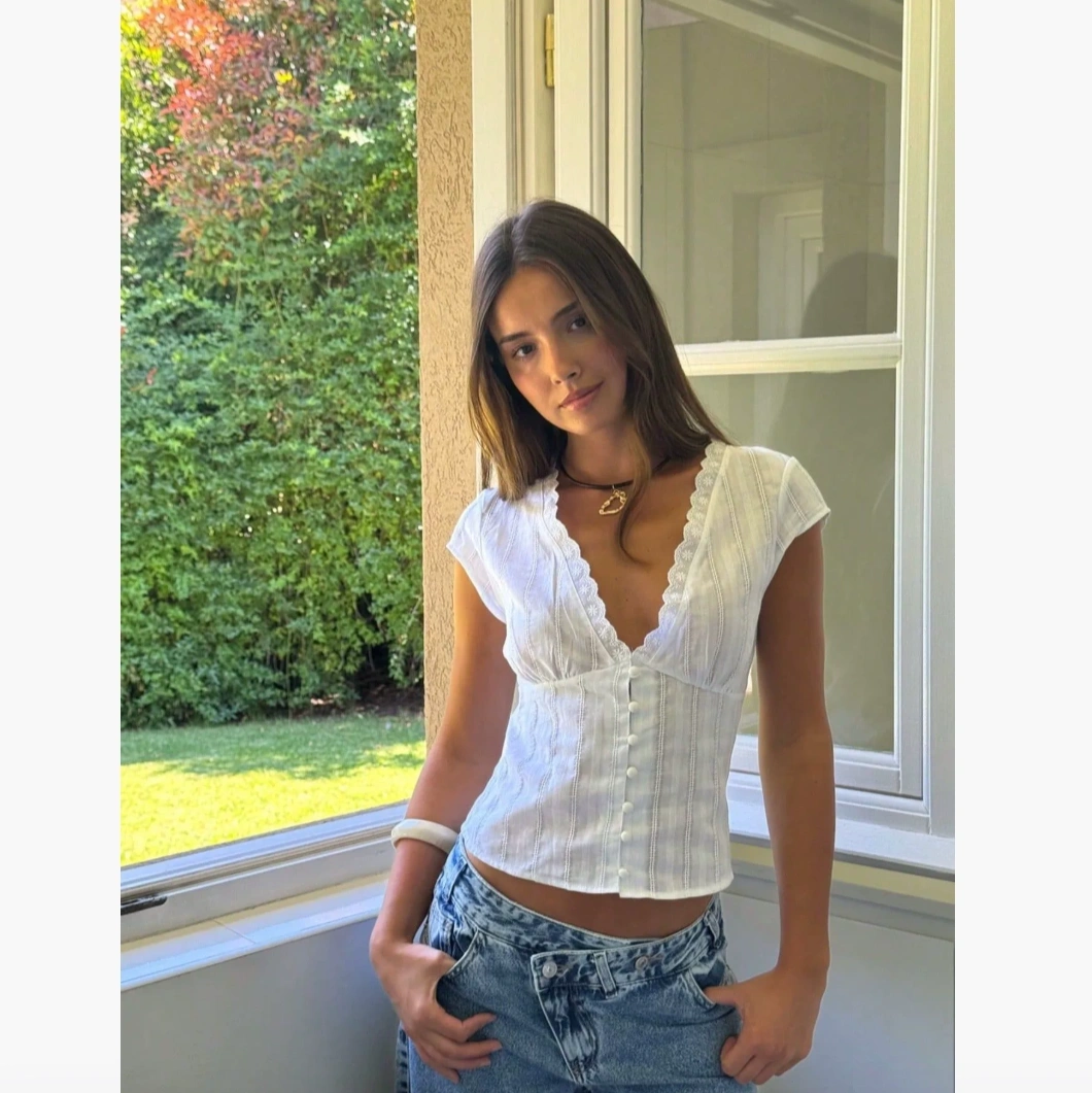 Cute White V Neck Top