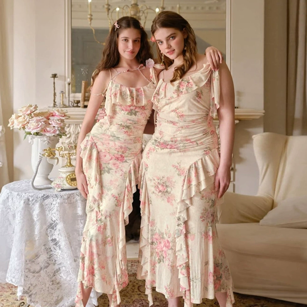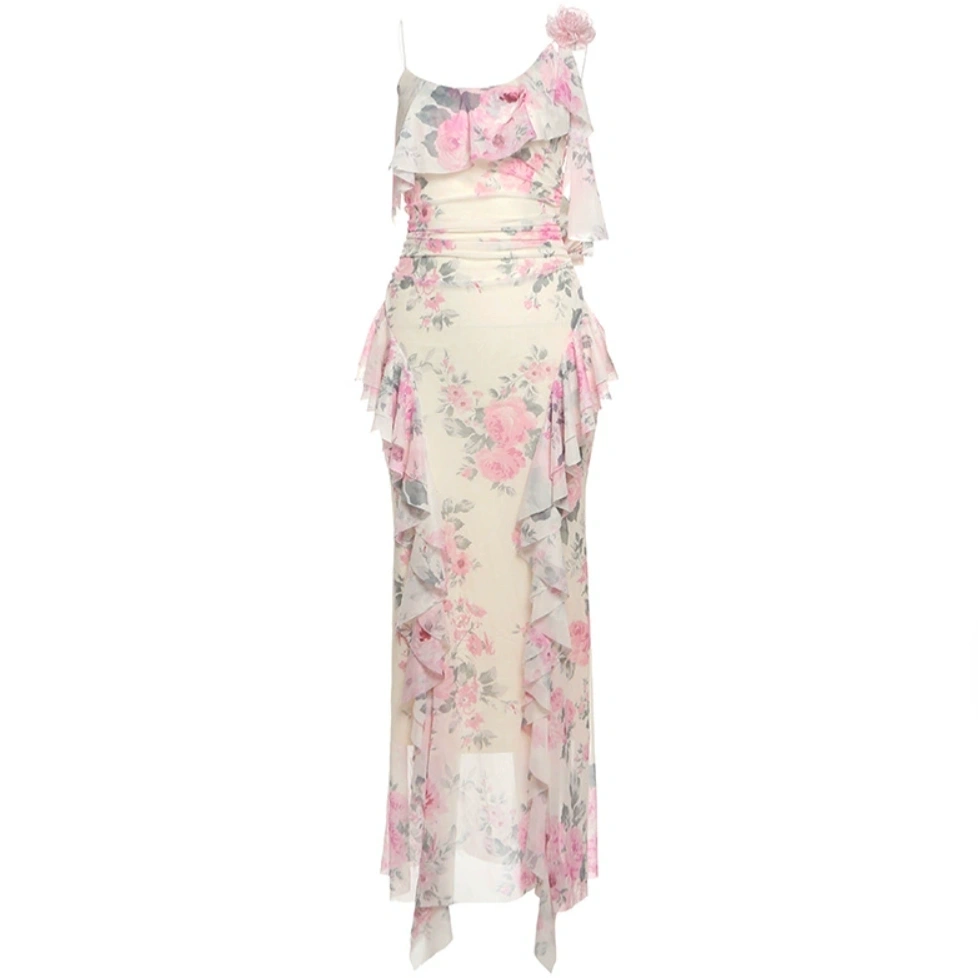 Floral Ruffle Dress - Flower Print Long Bodycon Dress