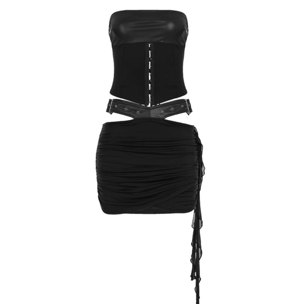 Leather Top & Skirt Set