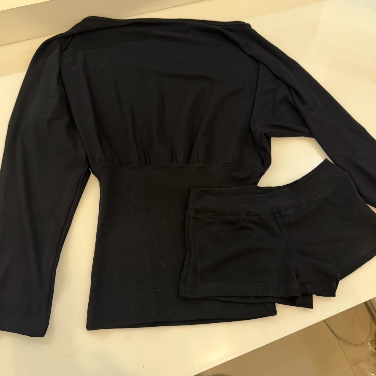 Off Shoulder Long Top & Booty Shorts Set