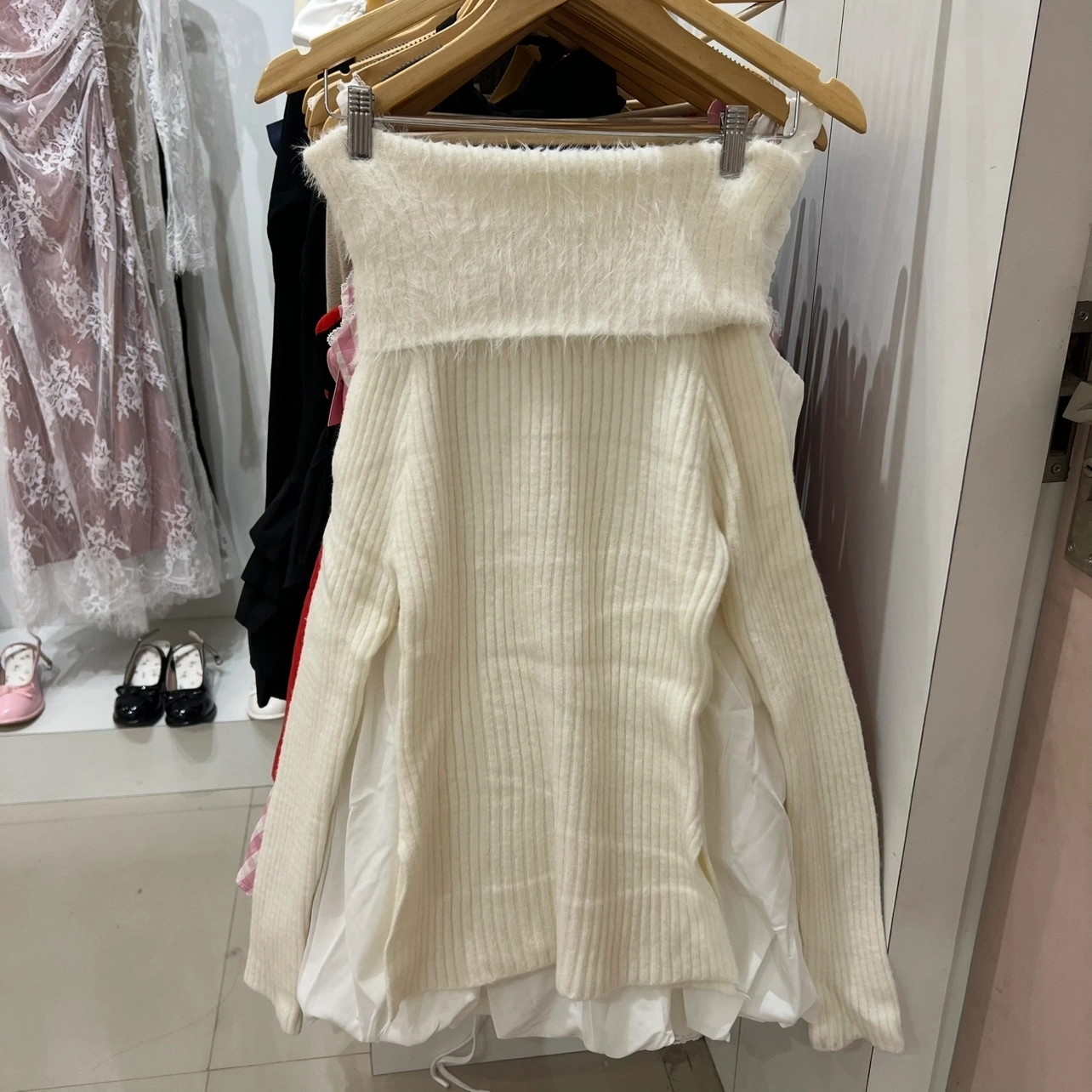 Off Shoulder Sweater - Warm fuzzy knitted top