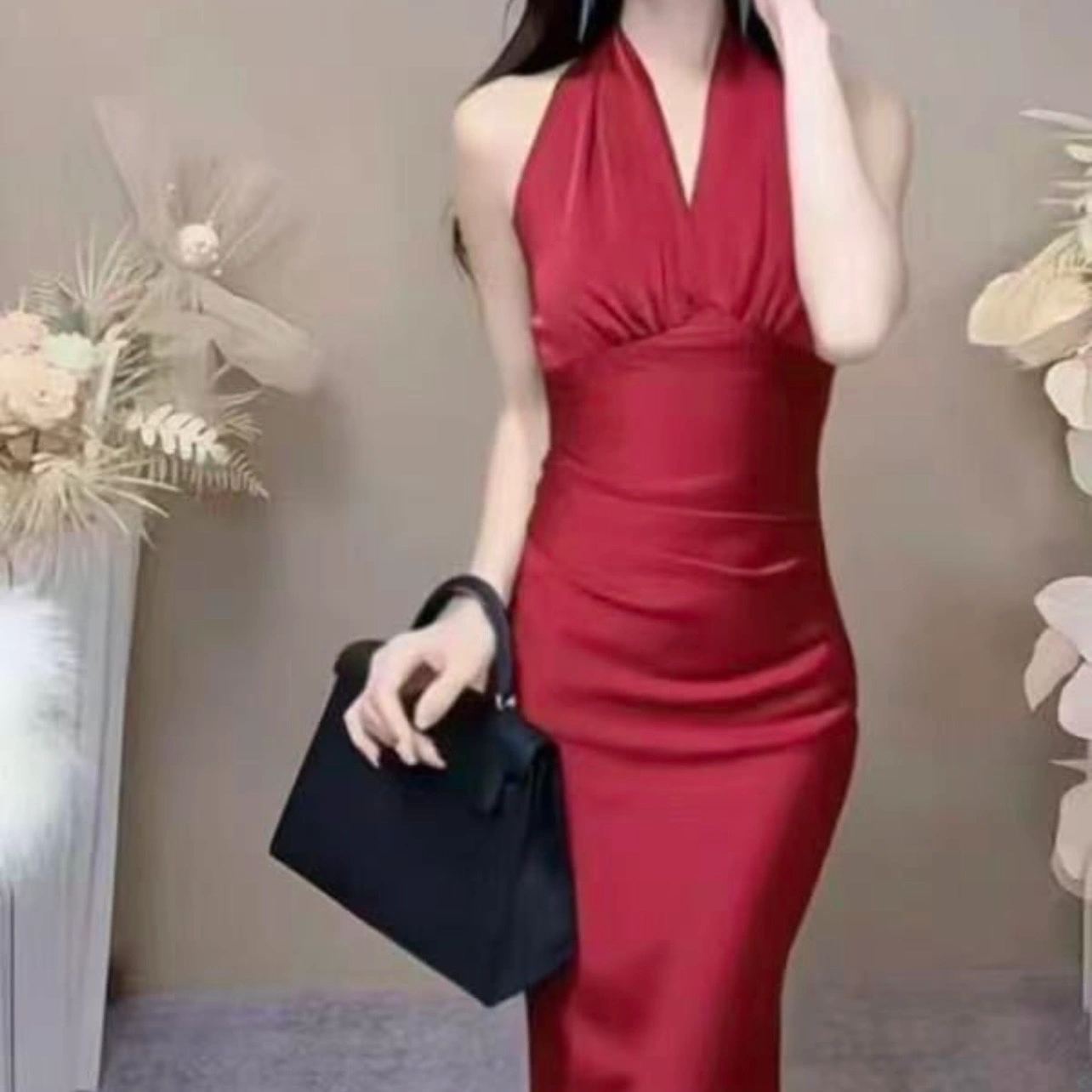 Satin Halter Long Dress