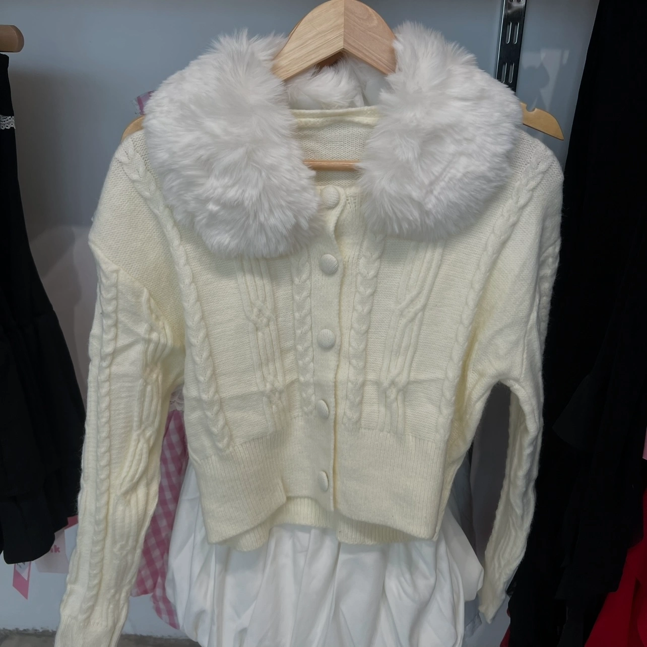 Warm Cardigan with Fluffy Fur Collar