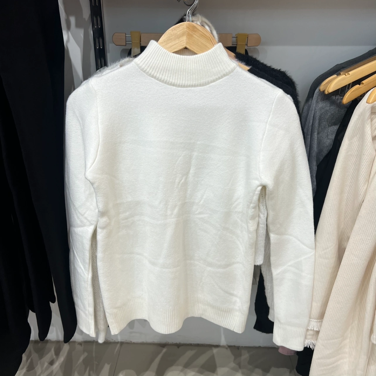 Warm High Neck Sweater - Fur Inside - Knitted Top